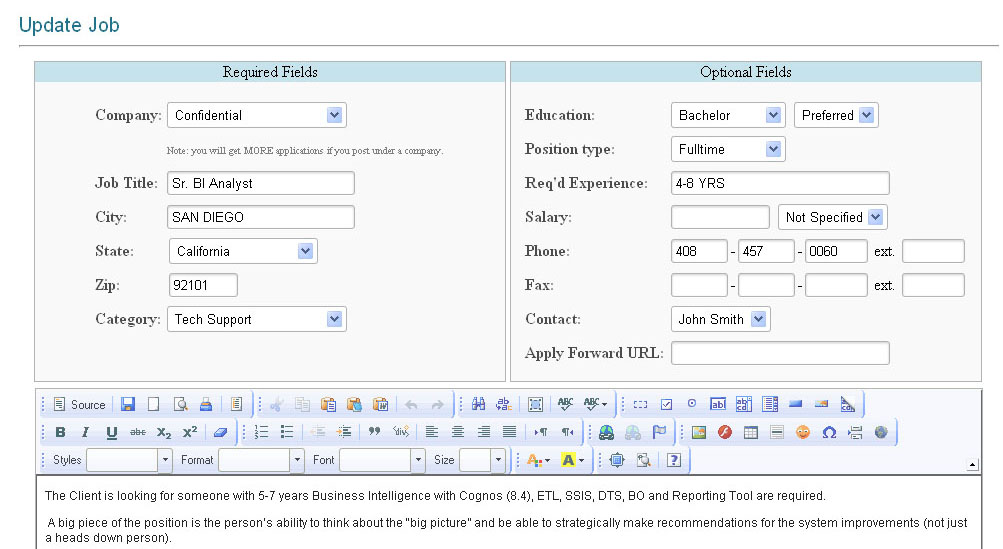 we are corporate friendly. All jobs are neatly stored in your account, as are all the candidates. All information is searchable and easy to access.